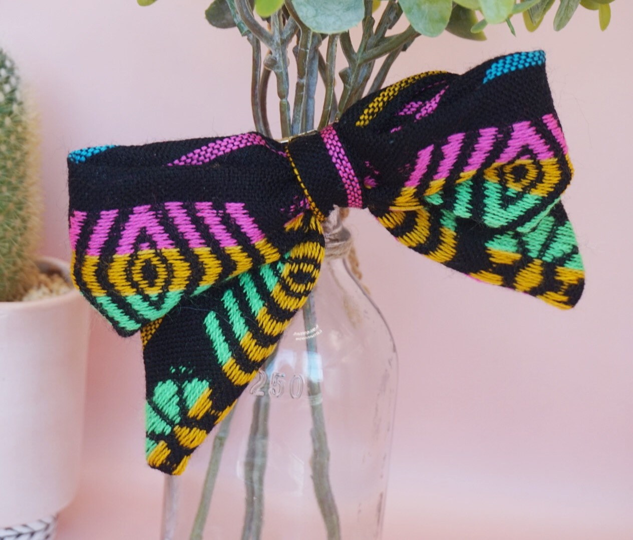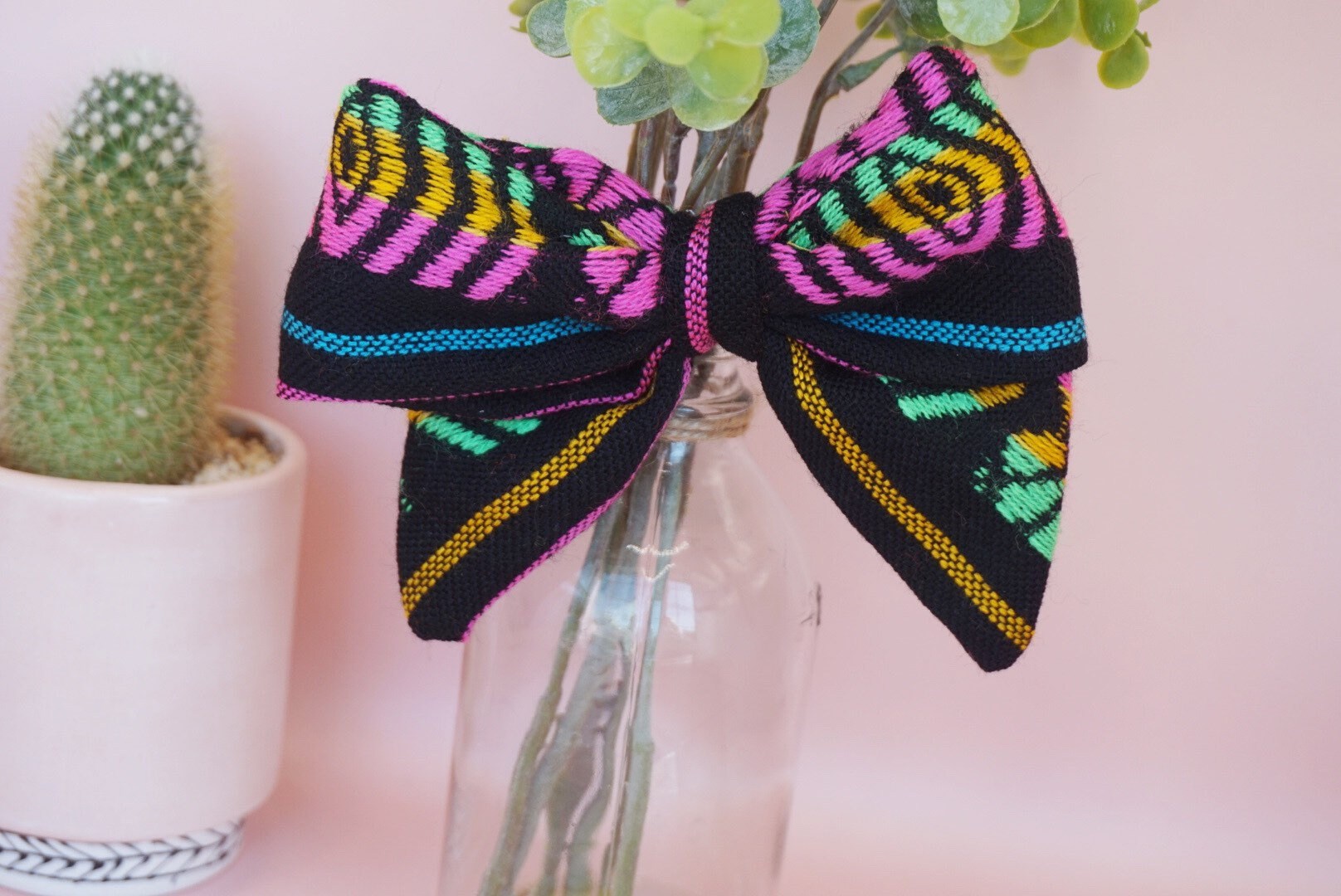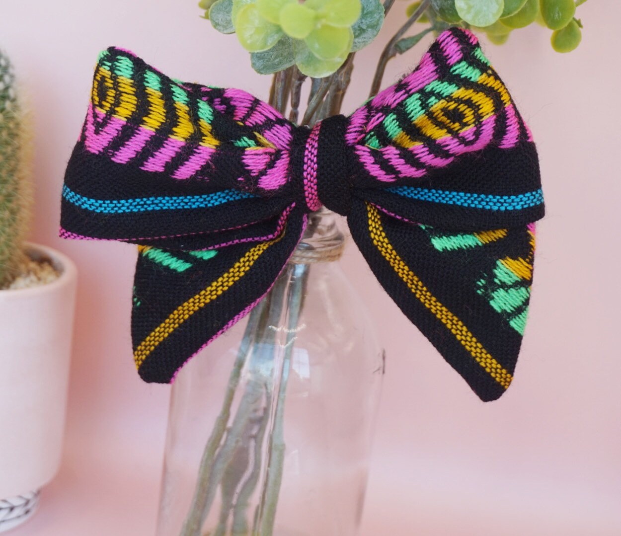 Black Giometric Pattern Mexican Cambaya bows, adorable and colorful, perfect for any occasion and outfit.