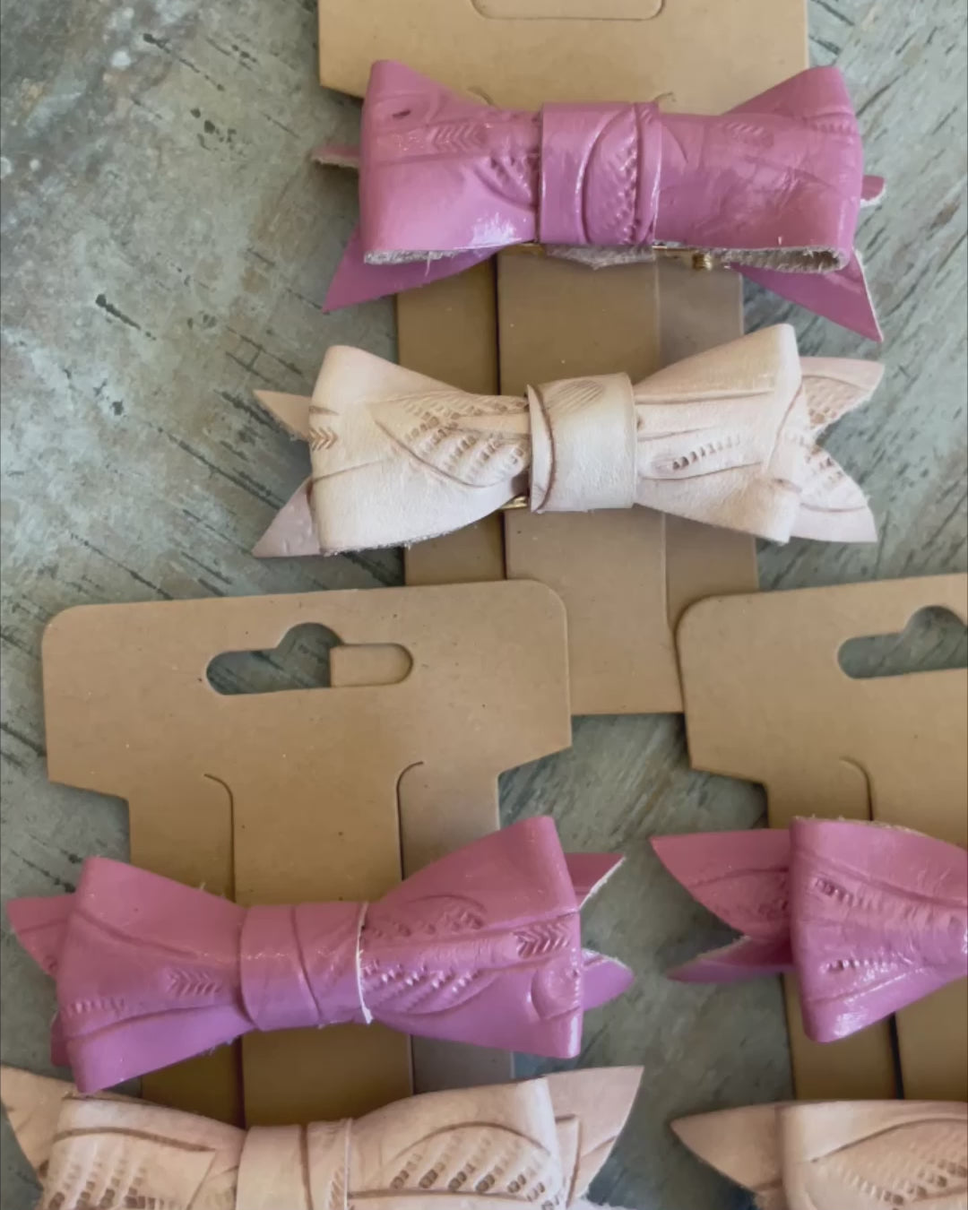 Chiseled leather hair bow, adorable and colorful, perfect for any occasion and outfit.
