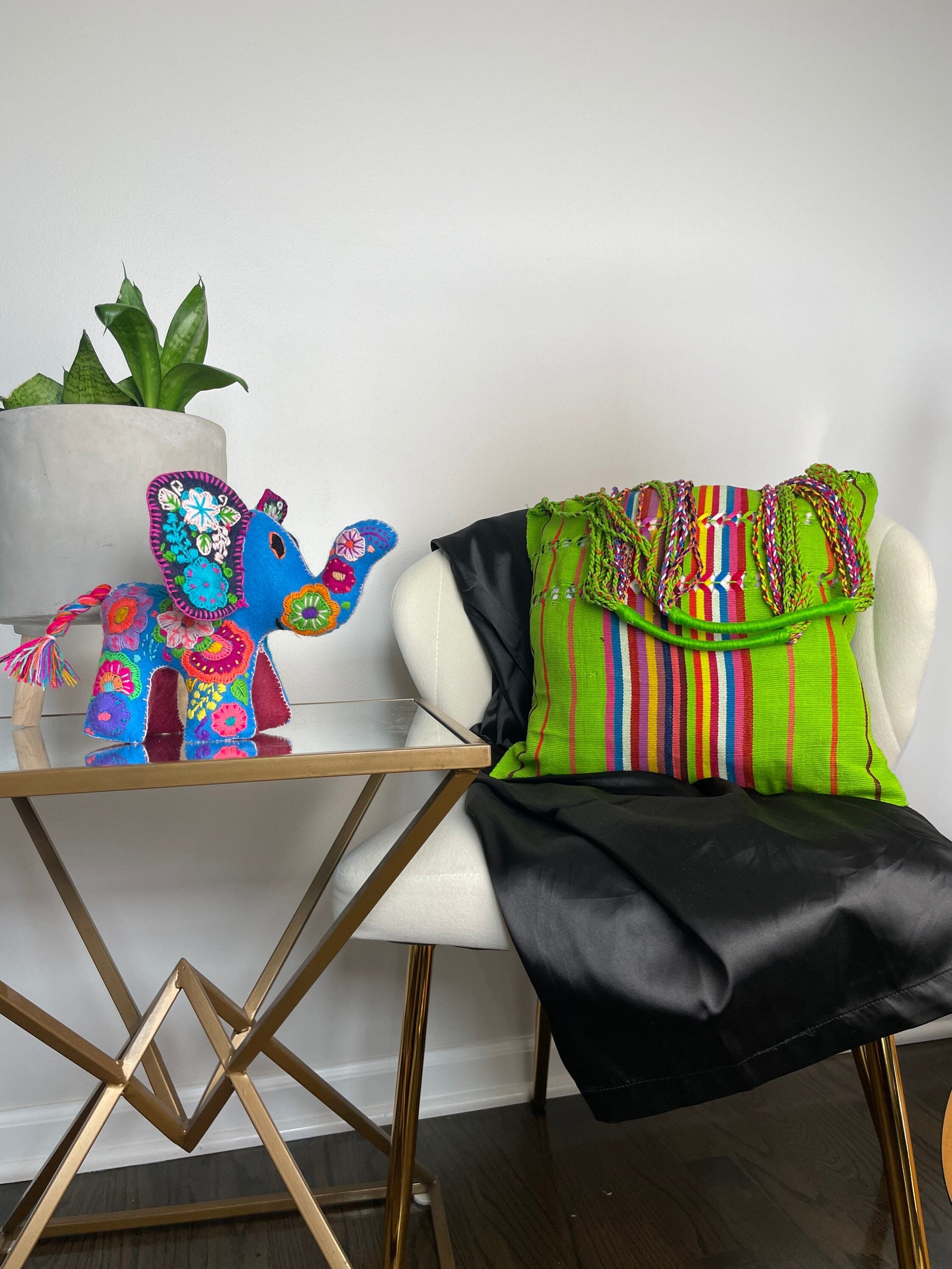Esta bolsa de mercado puede ser usada como bolsa para ir de compras, bolsa con tu atuendo y mucho más. La bolsa de mercado es practical como lo es llamativa. Los colores son típicos Colores Mexicanos y te hará resaltar en cualquier lugar que vayas.