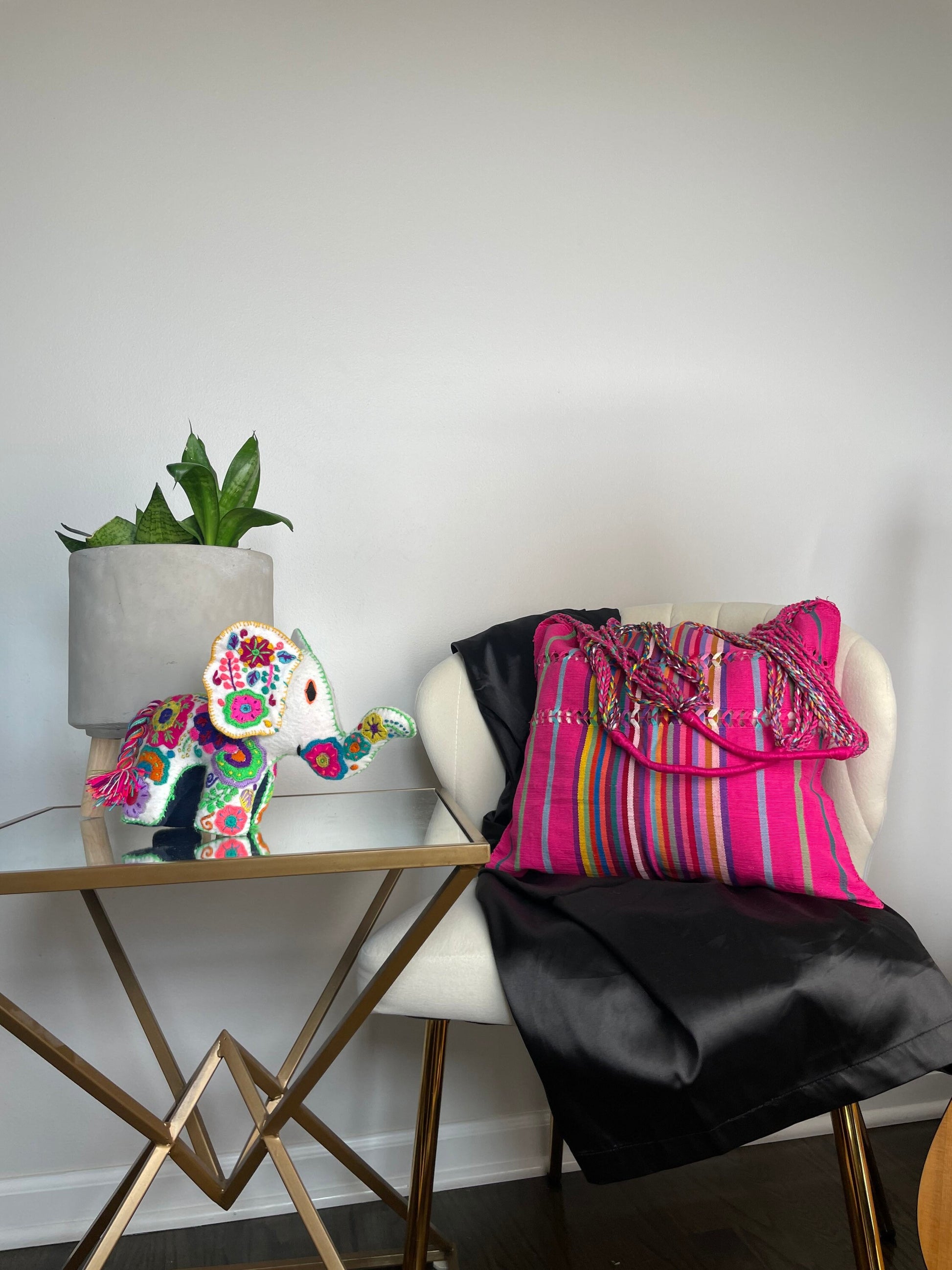 Esta bolsa de mercado puede ser usada como bolsa para ir de compras, bolsa con tu atuendo y mucho más. La bolsa de mercado es practical como lo es llamativa. Los colores son típicos Colores Mexicanos y te hará resaltar en cualquier lugar que vayas.