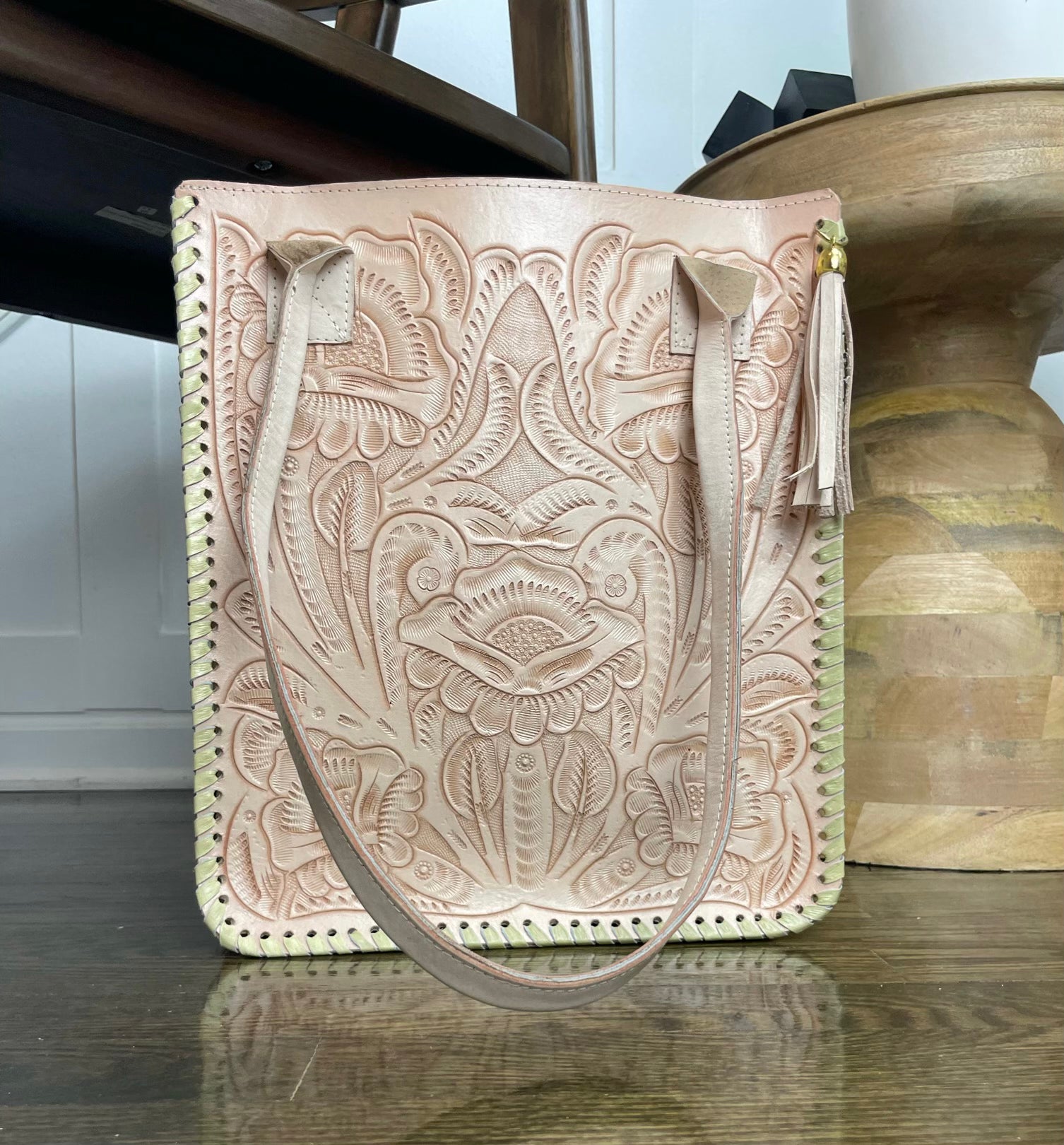 Stand out with this beautiful Chiseled Leather Tote bag. Hand made by Mexican artisans from Guadalajara.