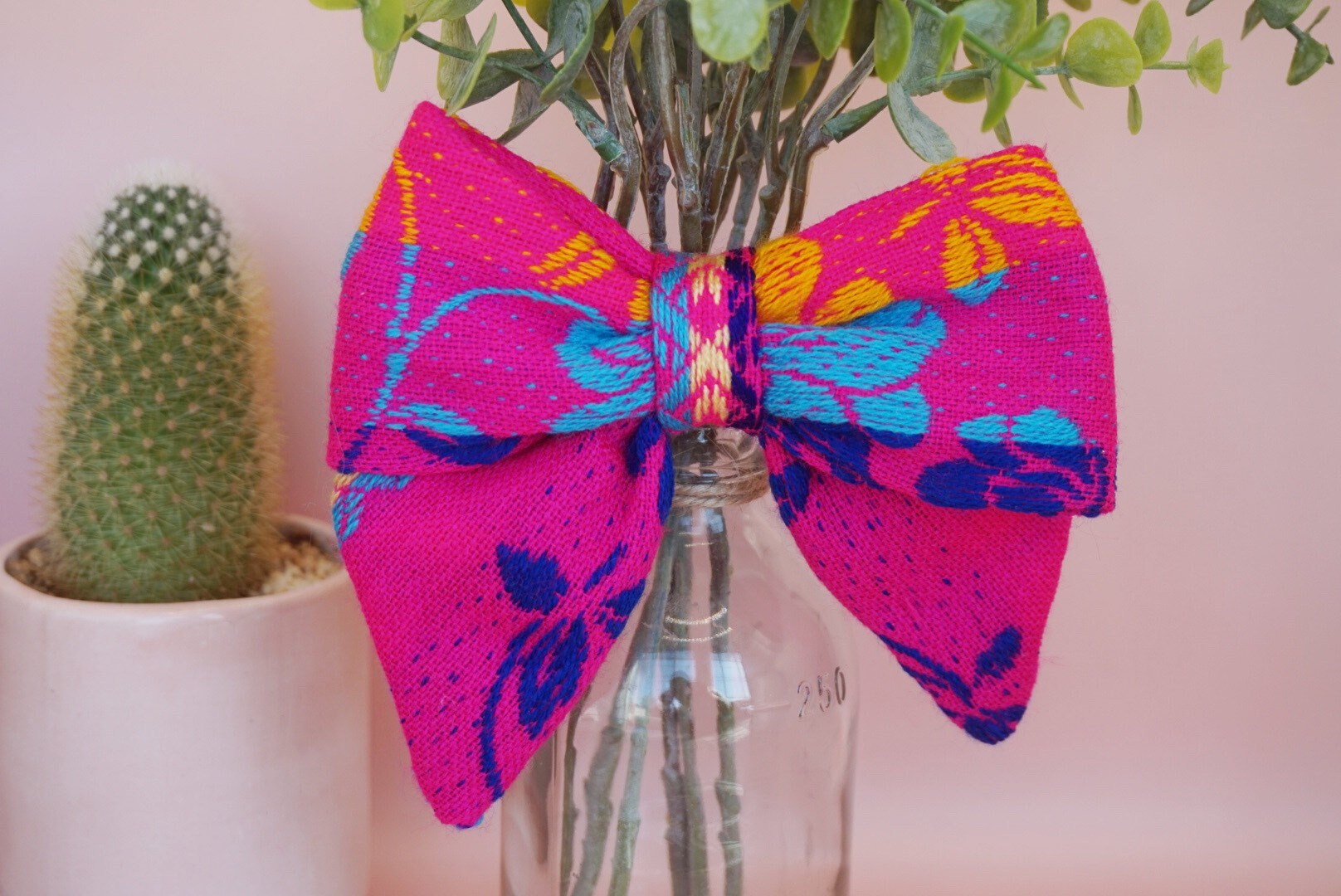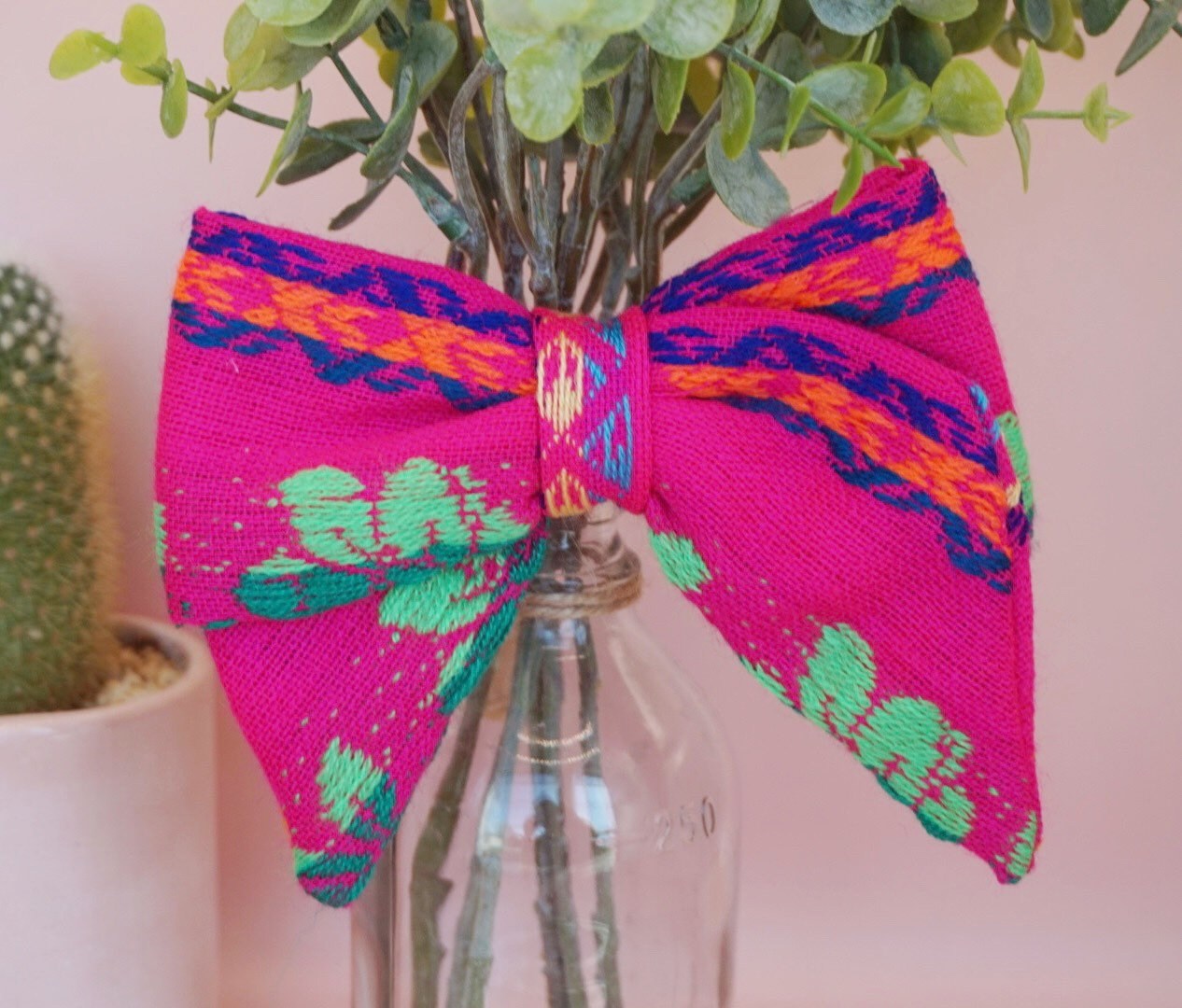Pink Floral Mexican Cambaya bows, adorable and colorful, perfect for any occasion and outfit.