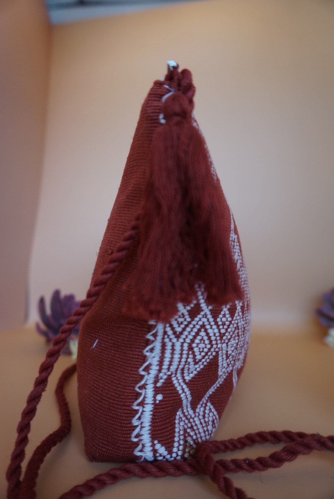 Look stylish while doing every day errands or at a music festival with this handmade Telar de Cintura over shoulder bag. Beautiful fabric with one of a kind pattern and beautiful tassel accents. Handmade fabric and purse by Mexican artisans from Chiapas, Mexico.