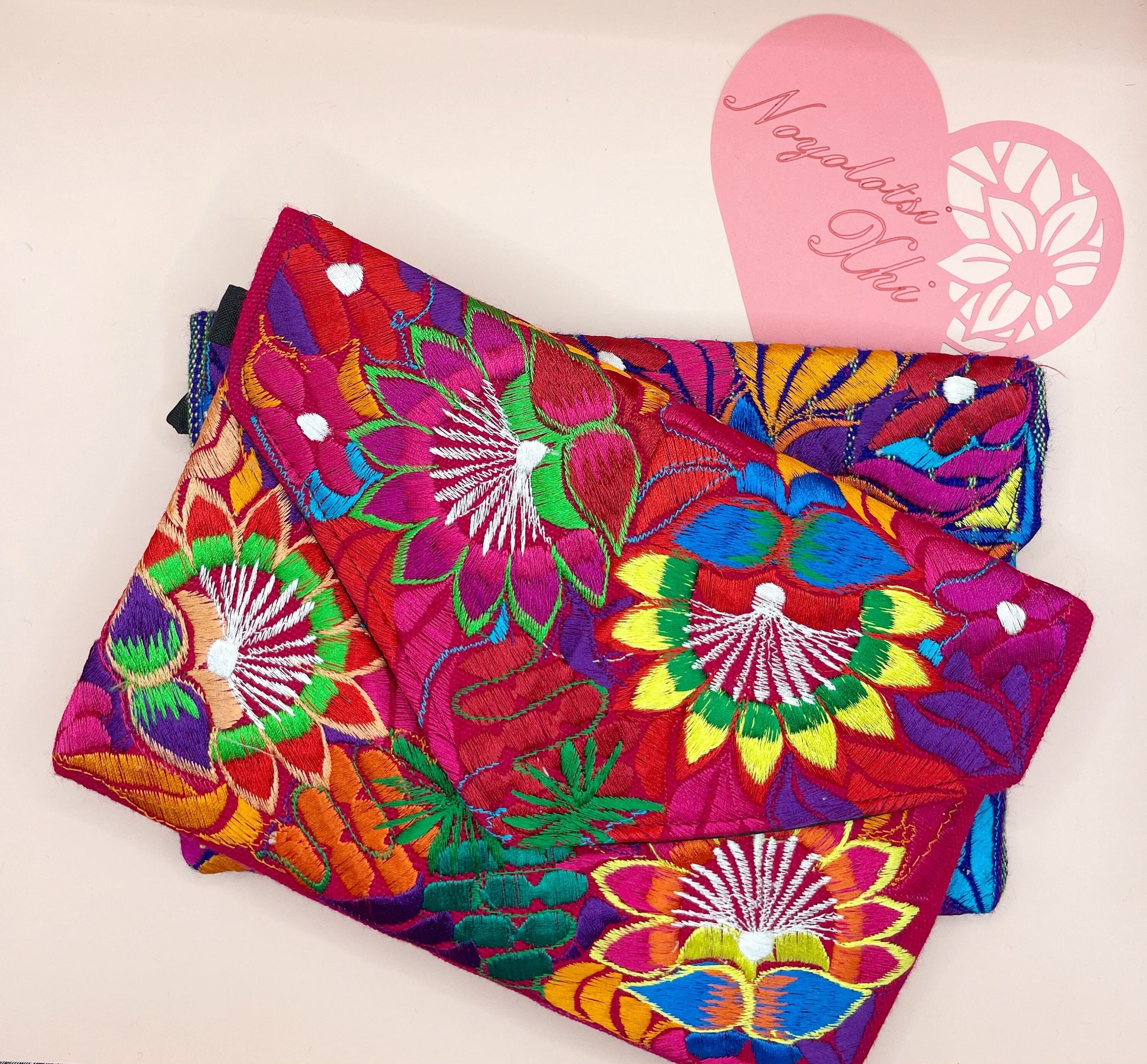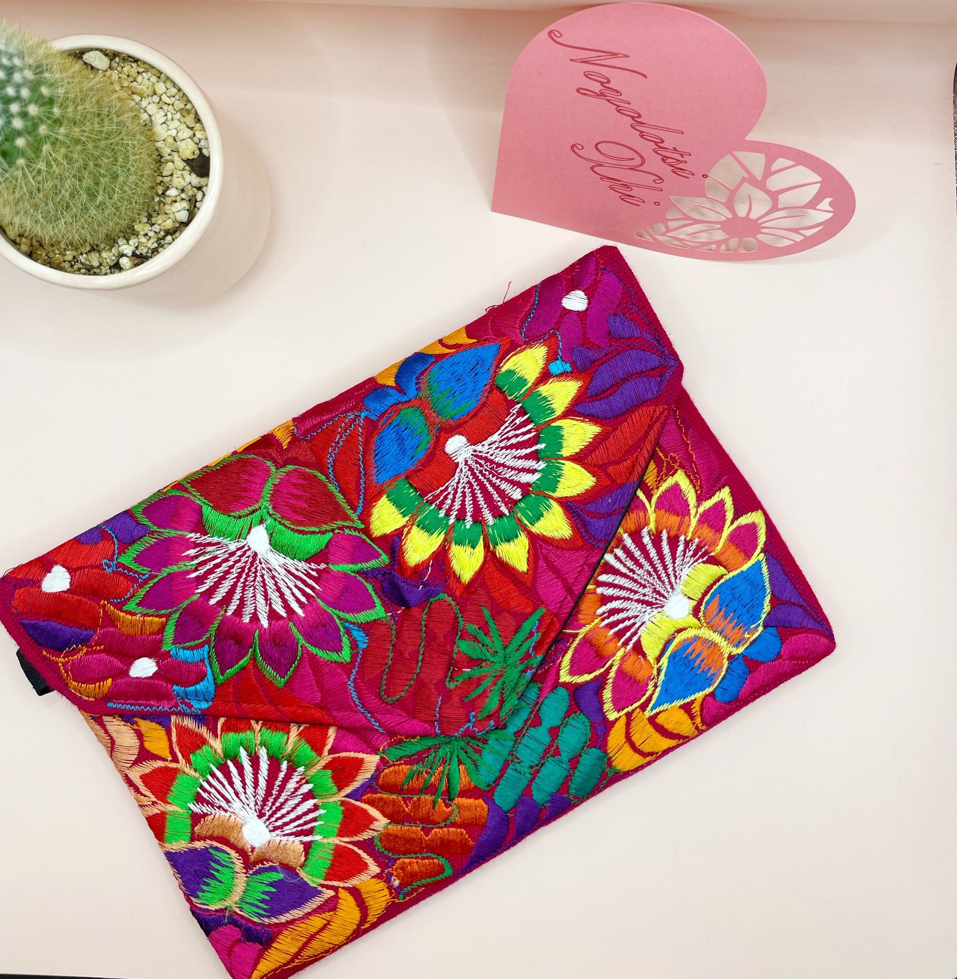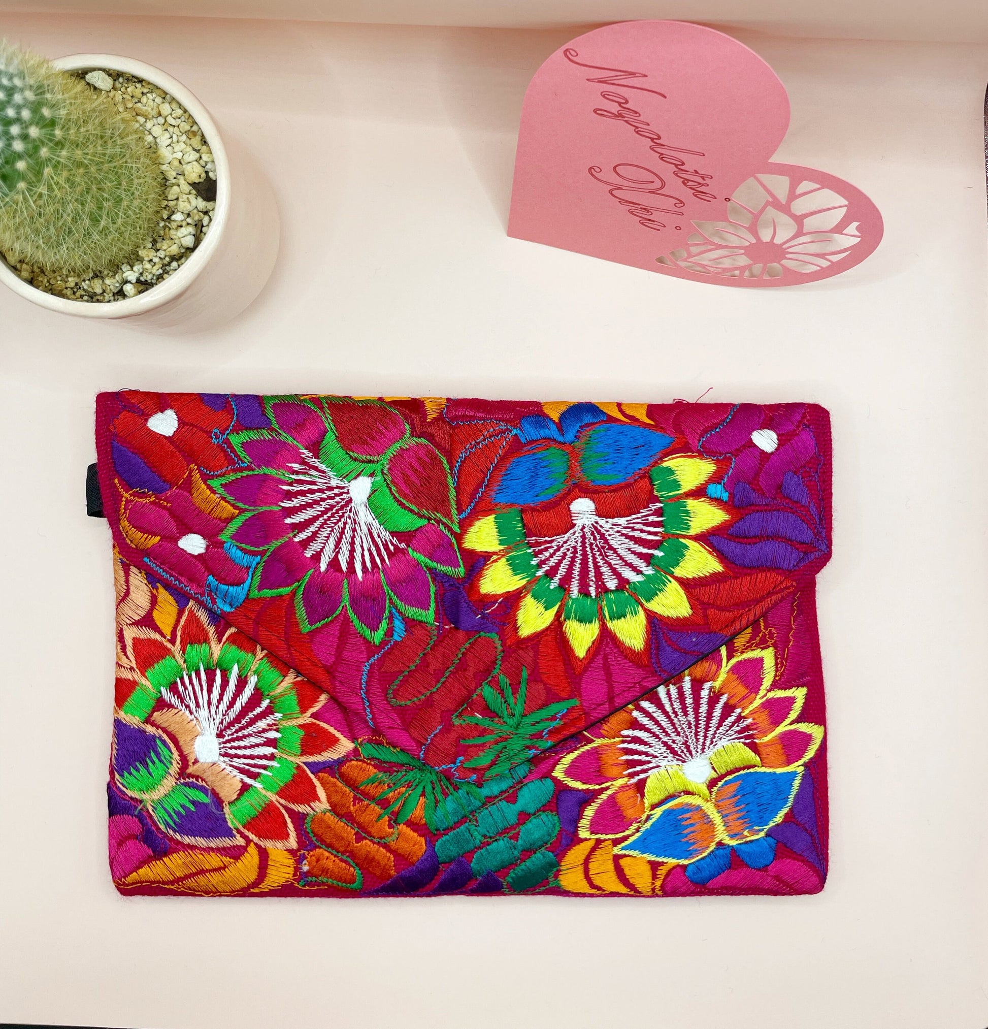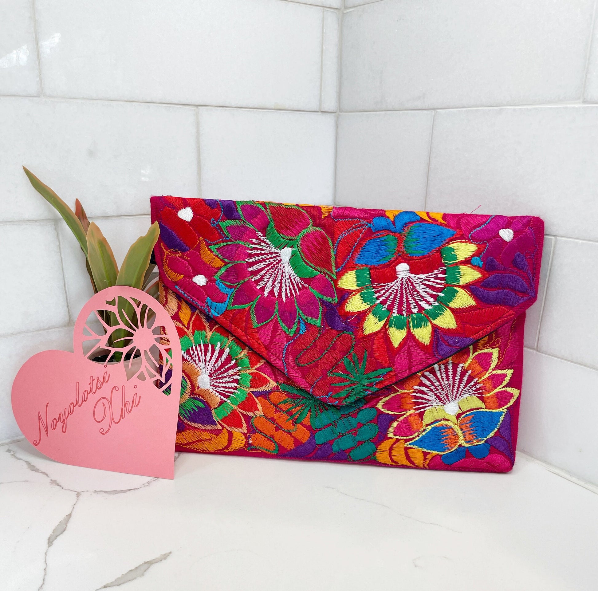 Look stylish and stand out for any occasion or special events. This handmade embroidered clutch will be your go to accessory. The color, and overall look will catch the eyes of all the right people. Beautiful fabric with one of a kind pattern and beautiful colors and accents. Handmade purse by Mexican artisans from Chiapas, Mexico.