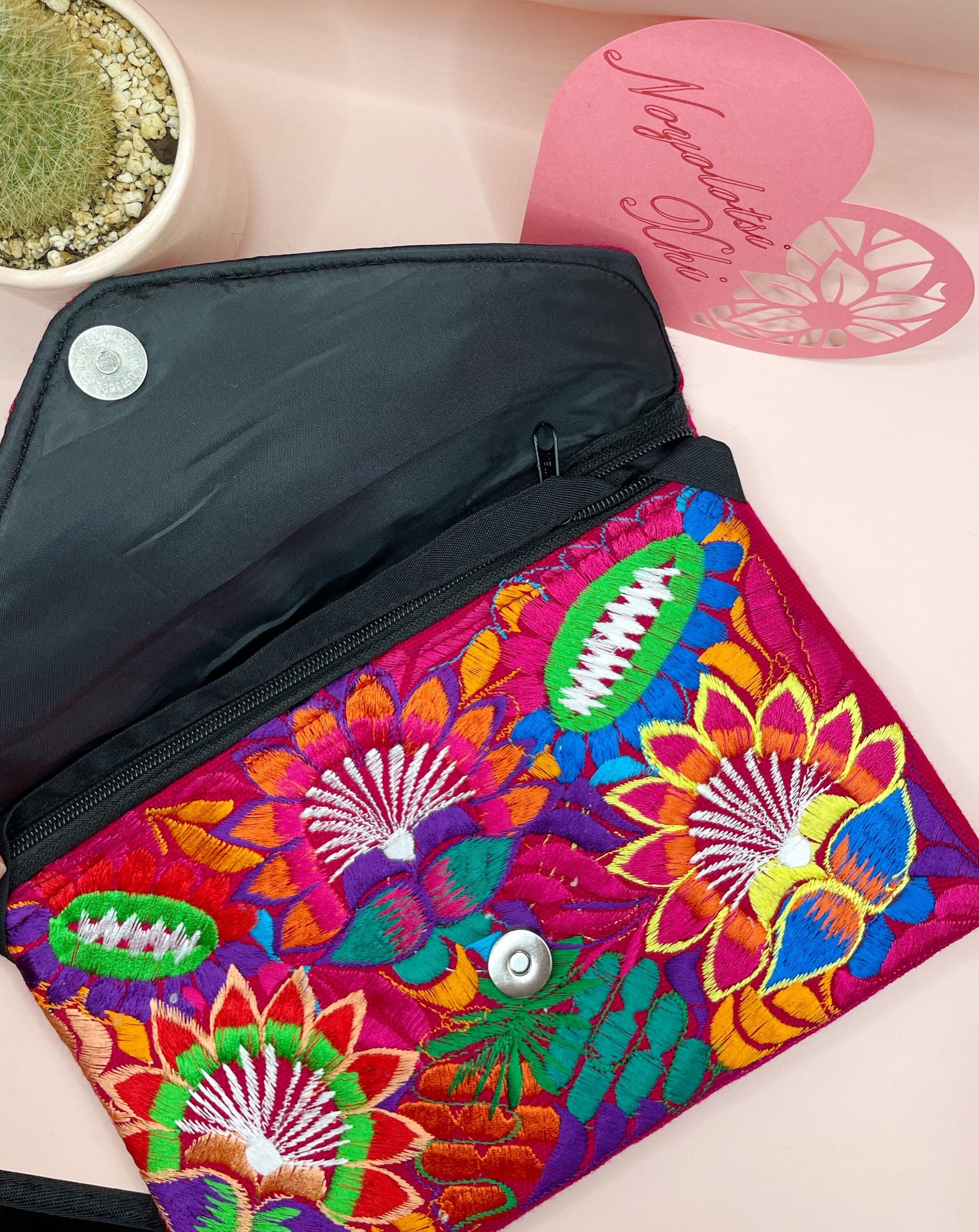 Ponle estilo a tu atuendo y resalta para cualquier ocasión o evento especial. Este carteron huichol será tu “go to” de todos tus accesorios. Los colores, y el estilo de este bolso/carteron captarán el ojo de todos los presentes. Bordado hermoso y colores llamativos. El carteron está hecho por manos artesanales de Chiapas.