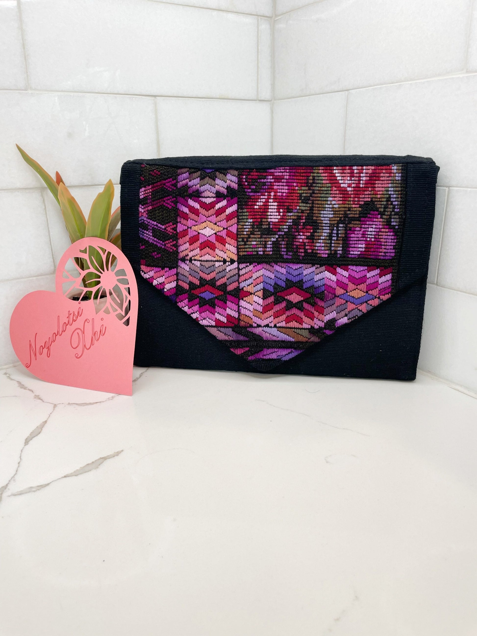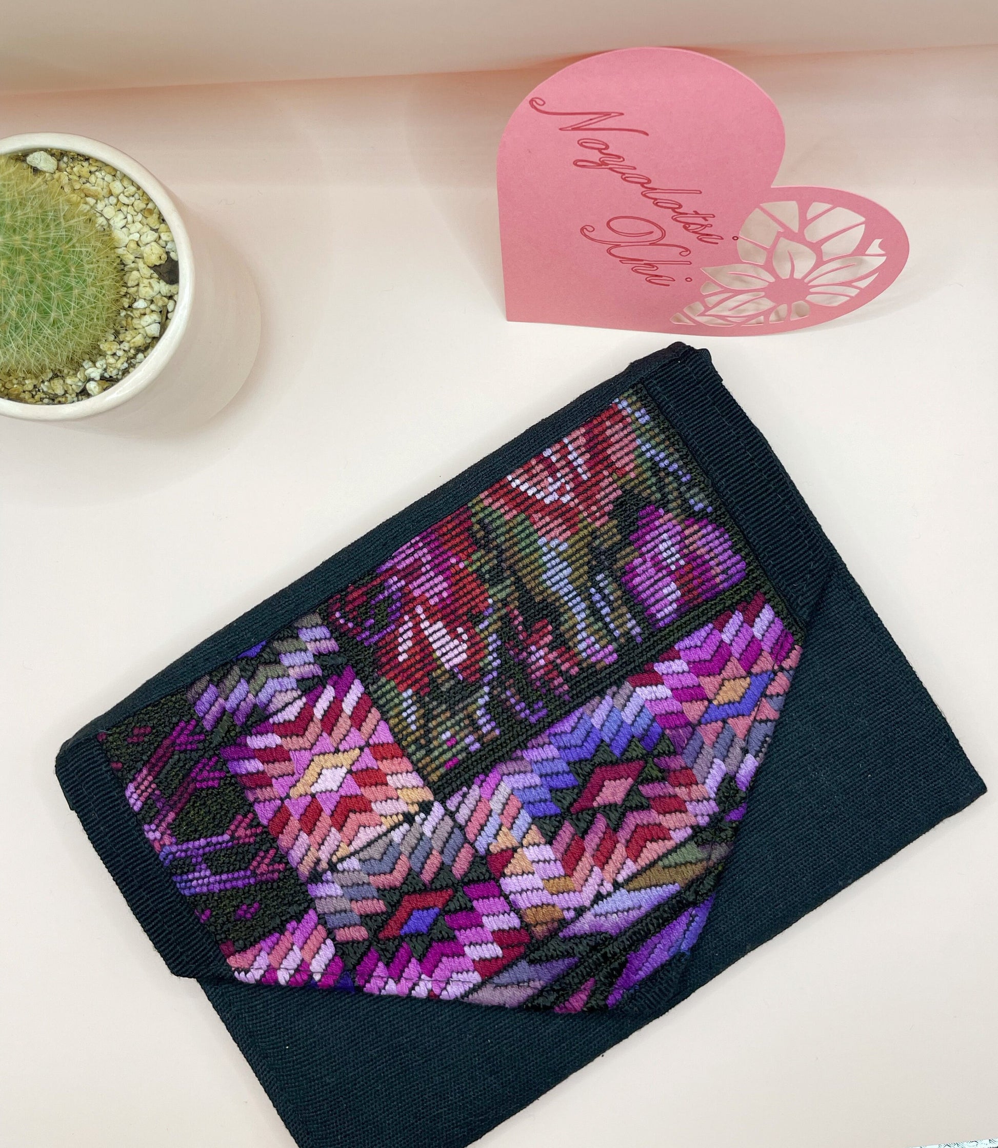 Look stylish and stand out for any occasion or special events. This handmade embroidered (punto cruz) clutch will be your go to accessory. The simple touches, colors, and overall look will catch the eyes of all the right people. Beautiful fabric with one of a kind pattern and beautiful colors and accents. Handmade purse by Mexican artisans from Chiapas, Mexico.