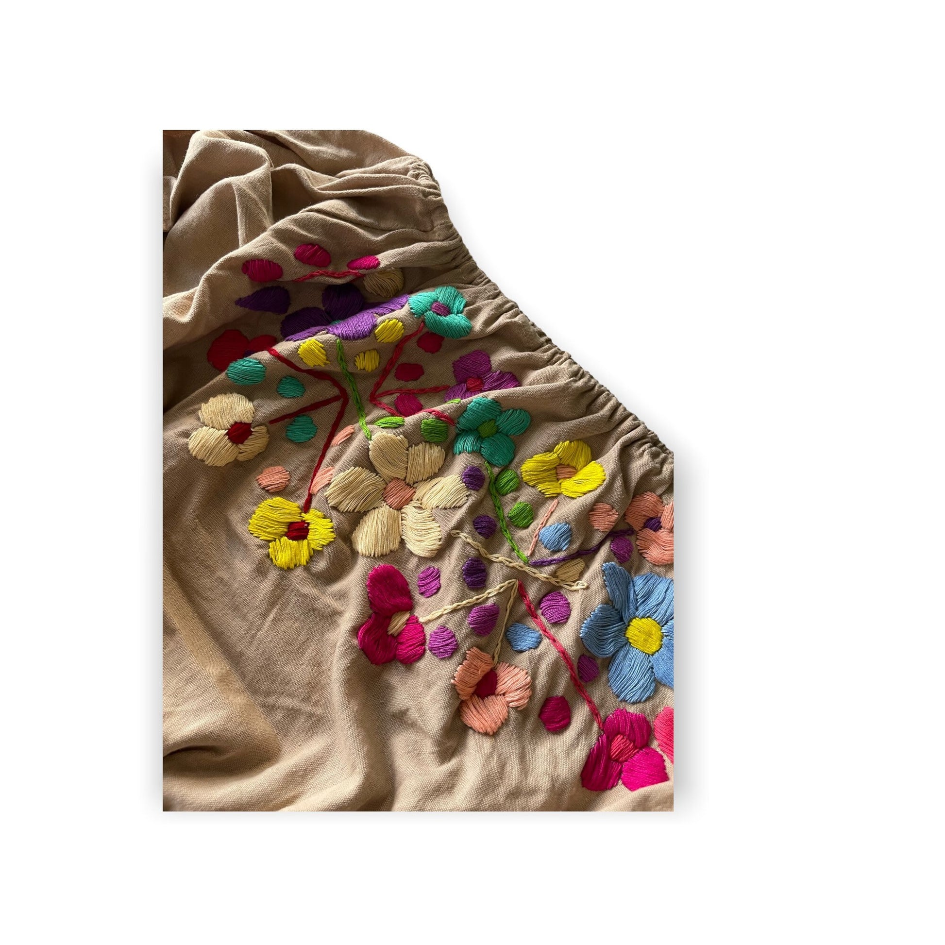 A crop top that is perfect for summer, the color, embroidered designs make this crop top a stand out piece. Embroidered women crop top t-shirt, 100% cotton t-shirt, hand embroidered by Mexican artisans. Subtle traditional bright Mexican colors.