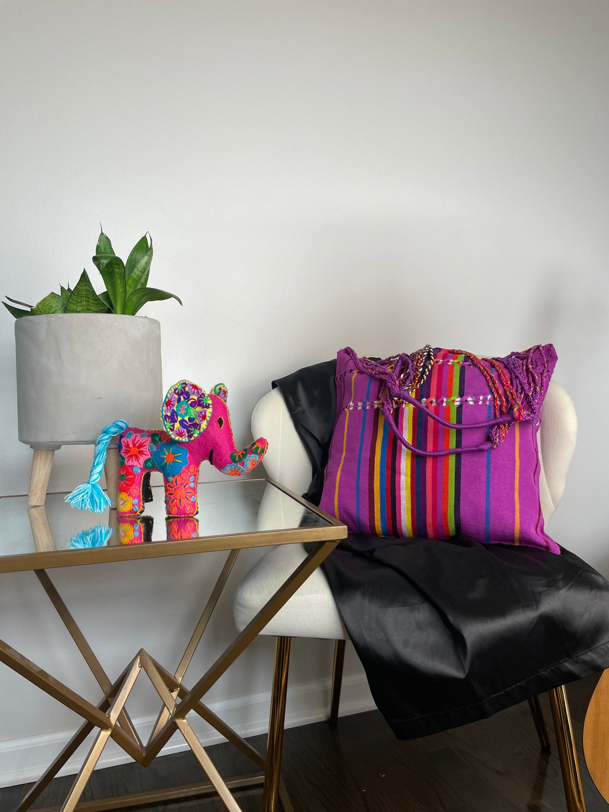 Esta bolsa de mercado puede ser usada como bolsa para ir de compras, bolsa con tu atuendo y mucho más. La bolsa de mercado es practical como lo es llamativa. Los colores son típicos Colores Mexicanos y te hará resaltar en cualquier lugar que vayas.